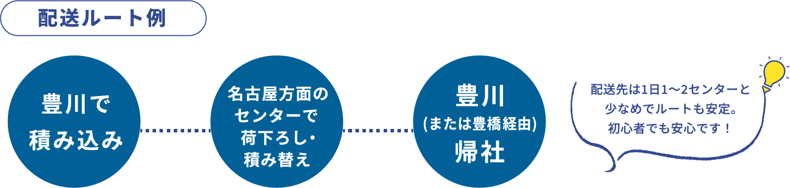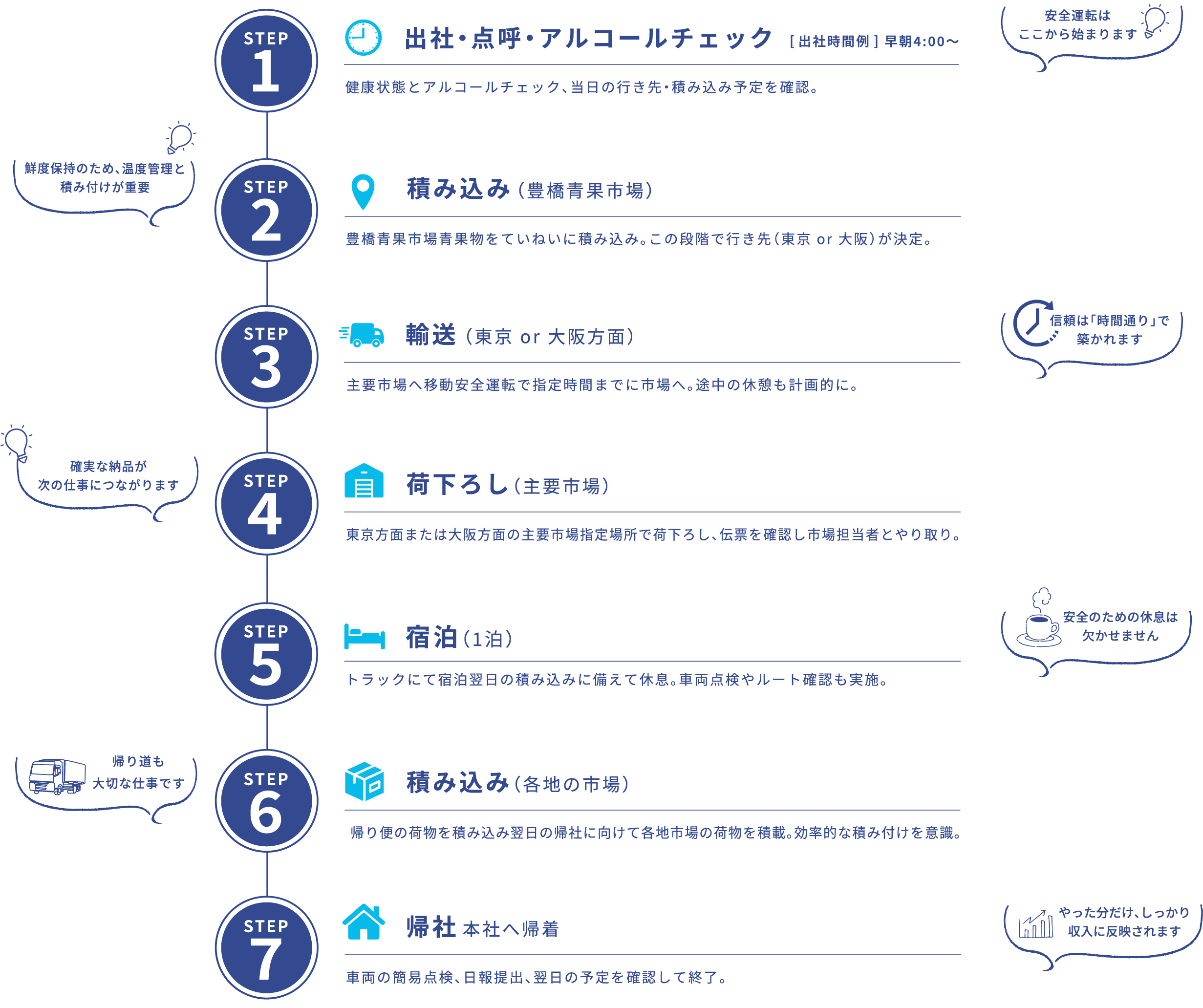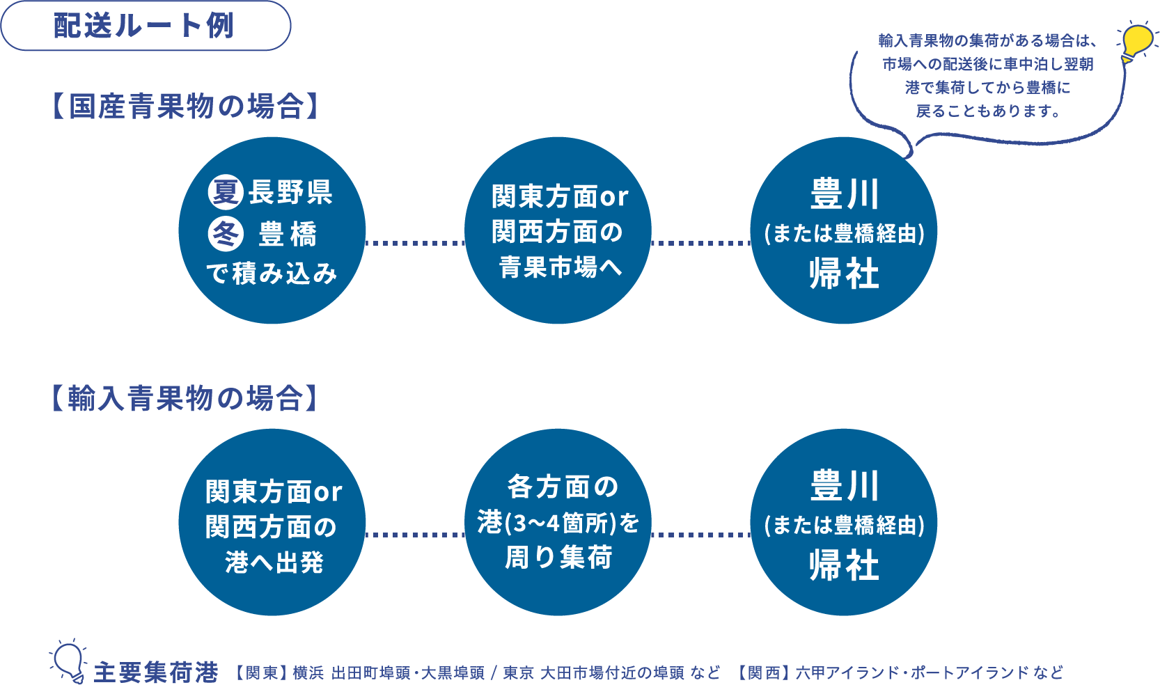 ※他2パターンほどあり / 翌日、輸入青果物を積荷してから豊橋に戻ることもあります。
